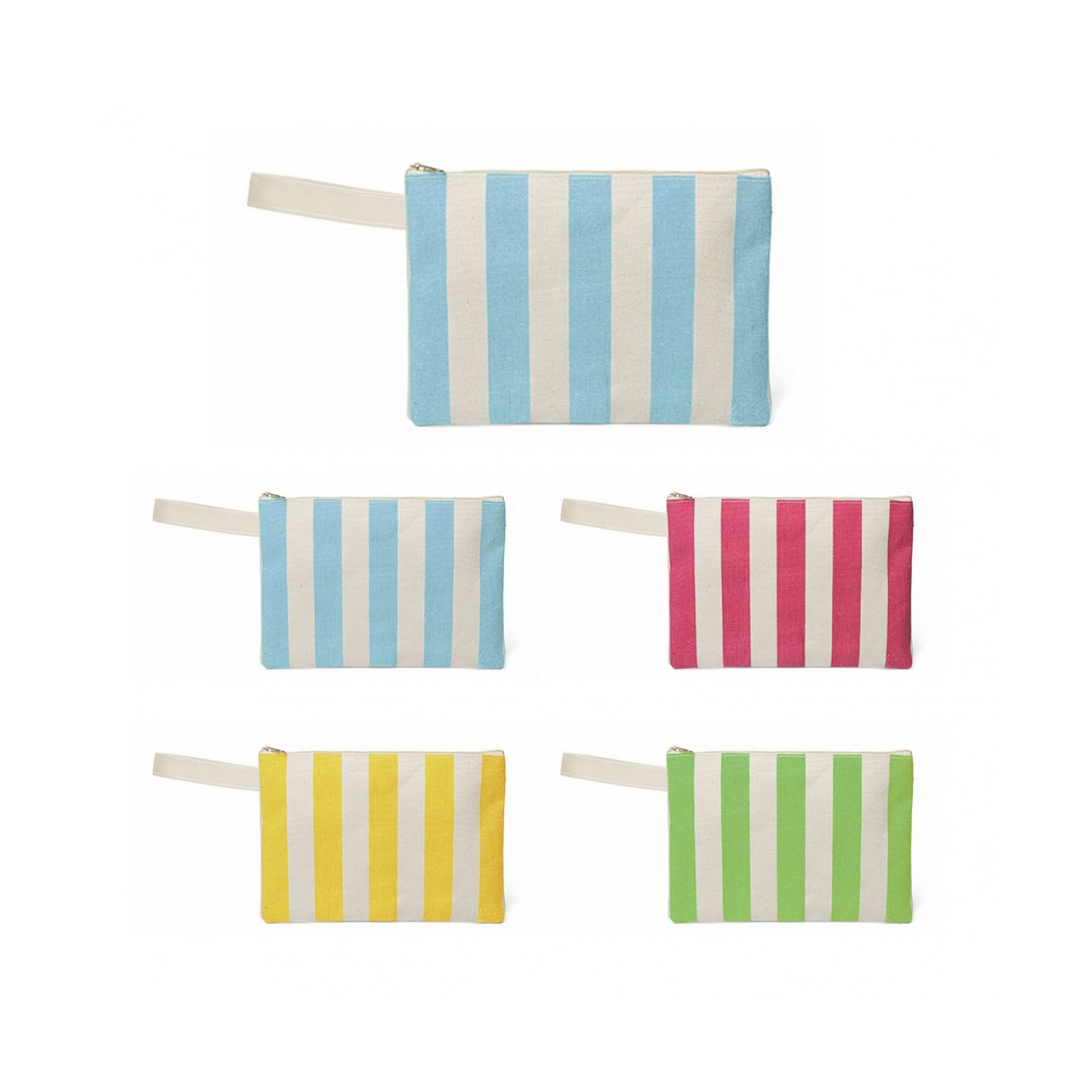 Pochette mare in natural canvas laminato 340g/m², chiusura con zip e manico lungo da cm 28.