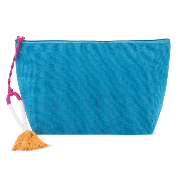 Pochette in juta laminata con zip e tirazip con frange cm27x17x8
