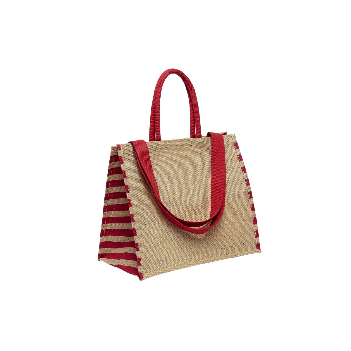 Borsa shopper in juta, grande capienza, finitura rigata nel soffietto. Doppi manici, corto e lungo.