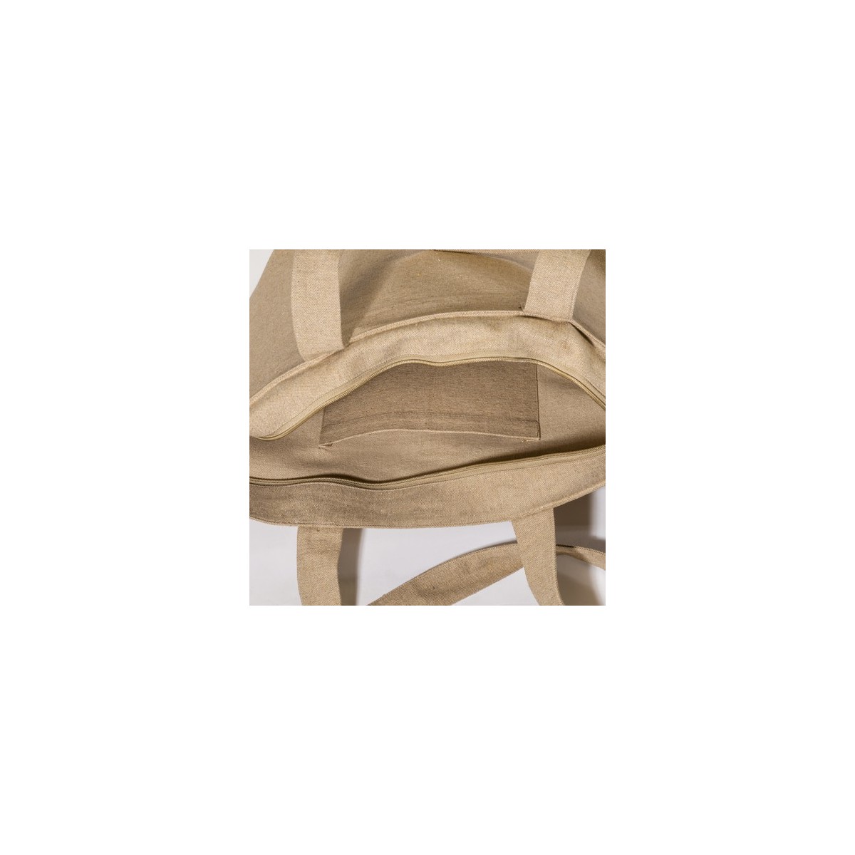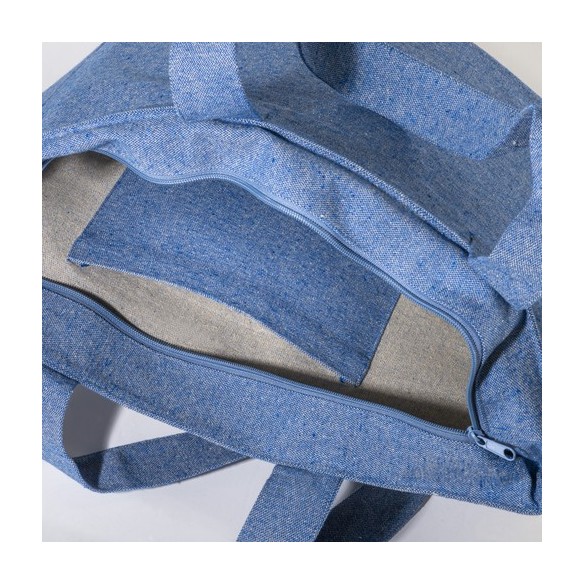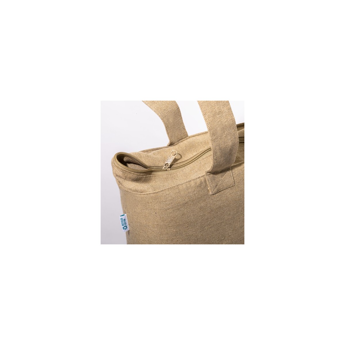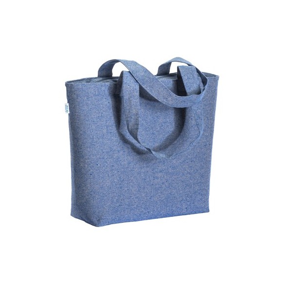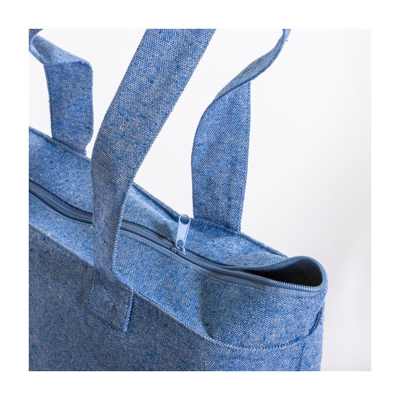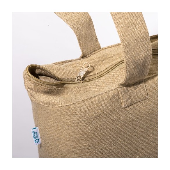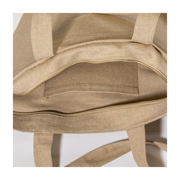 Shopper con soffietto alla base in cotone riciclato 280 g/m2, con cerniera, tasca interna e manici lunghi
