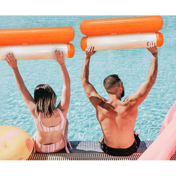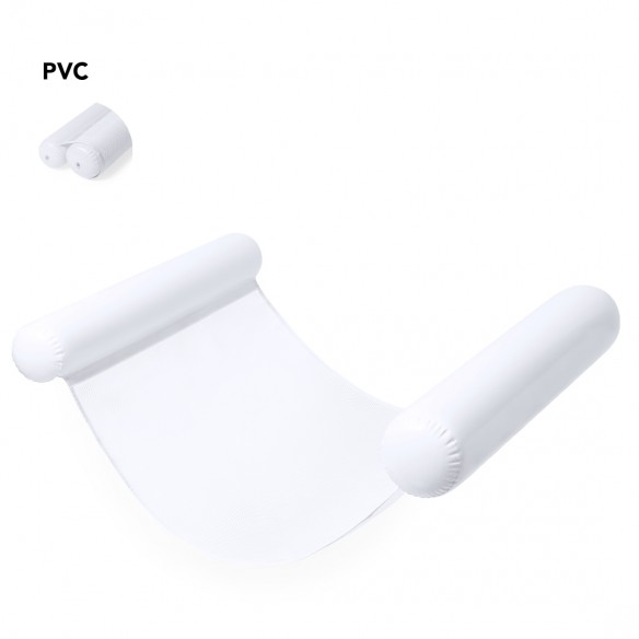 Originale materassino con estremità gonfiabili in resistente PVC. Arrotolabile e con una robusta rete centrale di 80x70 cm in poliestere bianco.