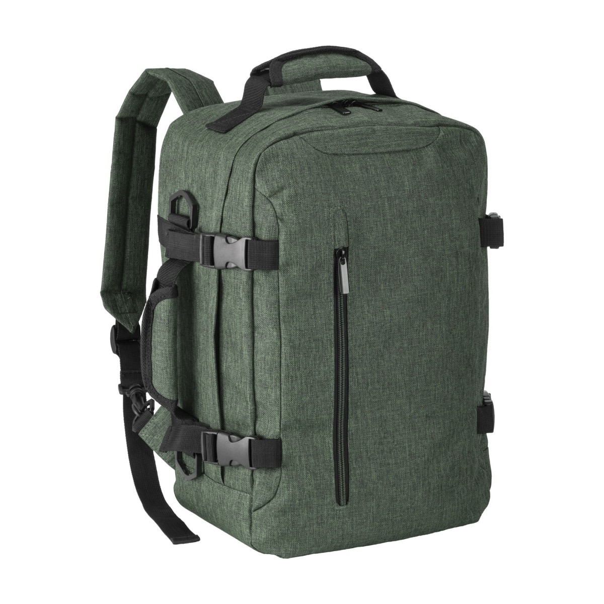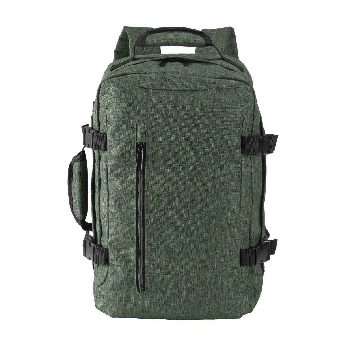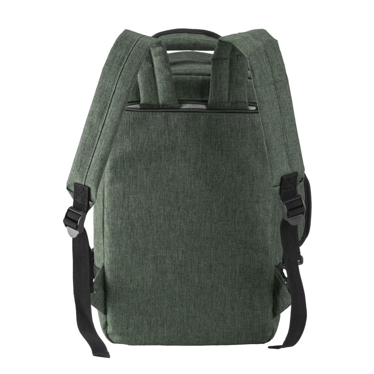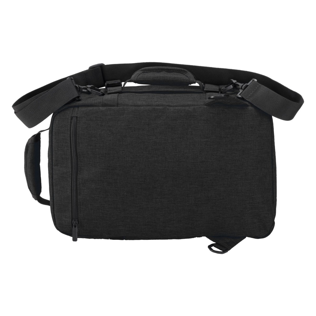 Zaino/borsoncino porta PC (15") in poliestere 900D melange.Compartimento imbottito per notebook. Tasca frontale con cerniera, schienale e spallacci imbottiti