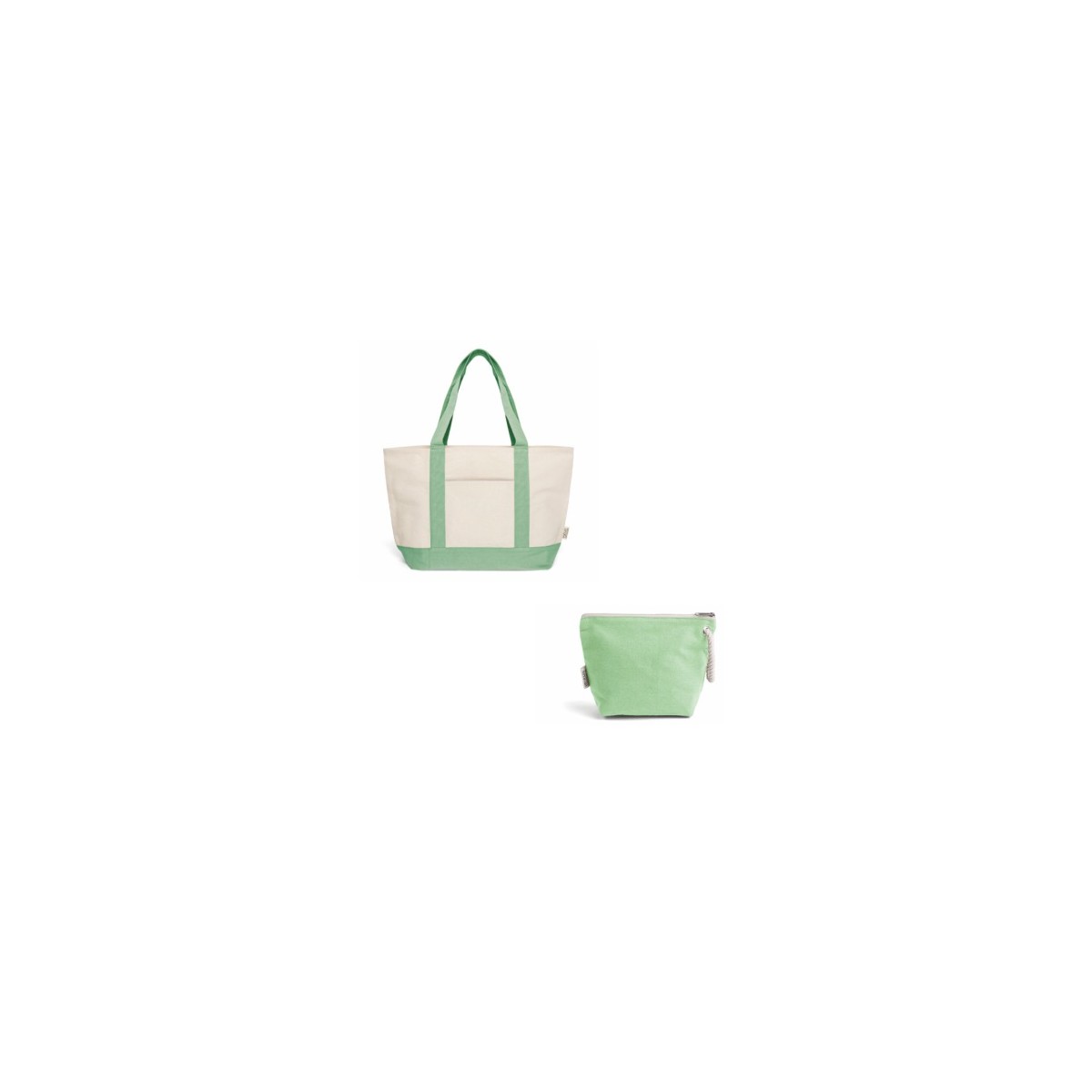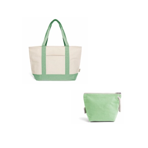 Borsa mare in cotone riciclato con tasca + beauty con manico in corda