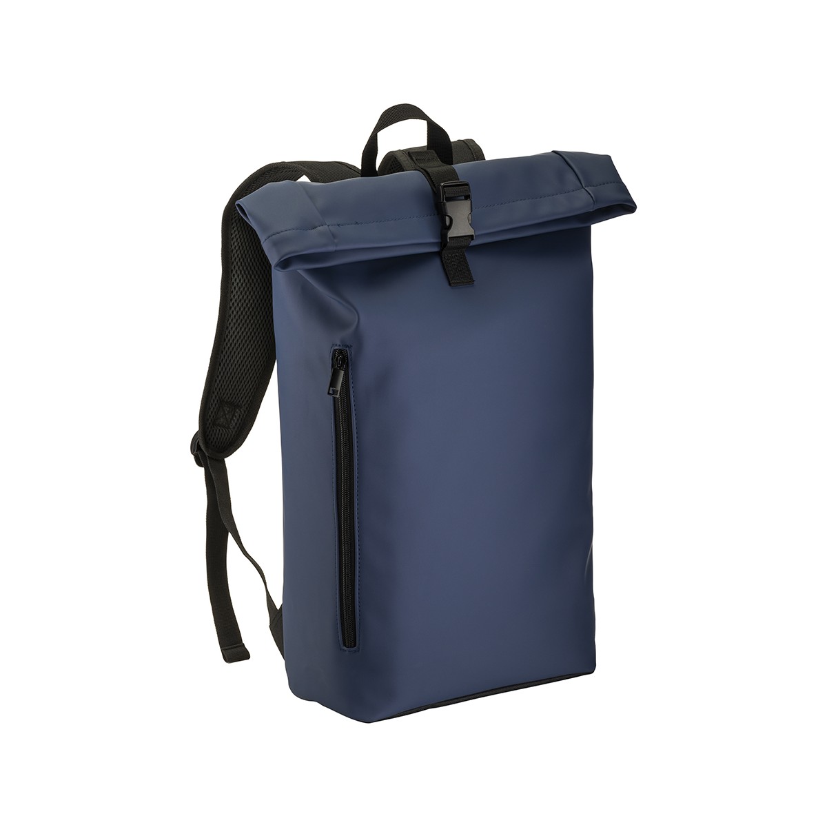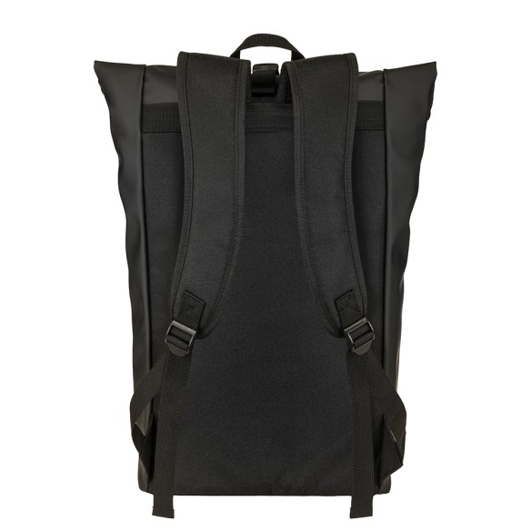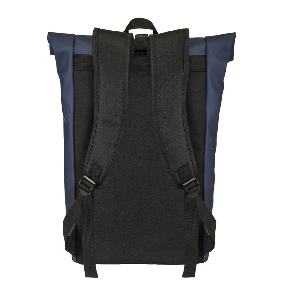 Zaino porta pc (15) in PU. Compartimento imbottito per notebook. Tasca frontale con zip verticale. Spallacci con materiale traspirante