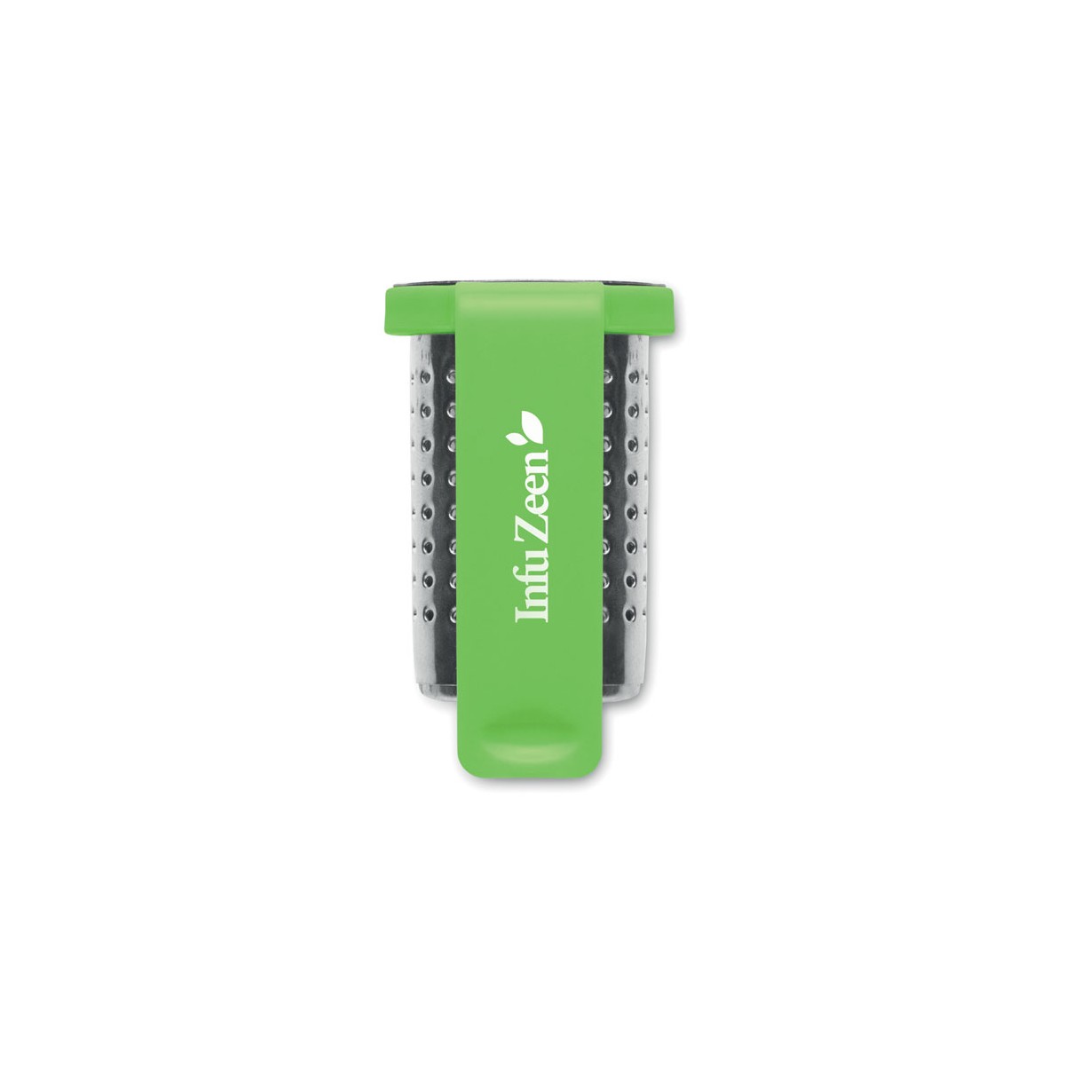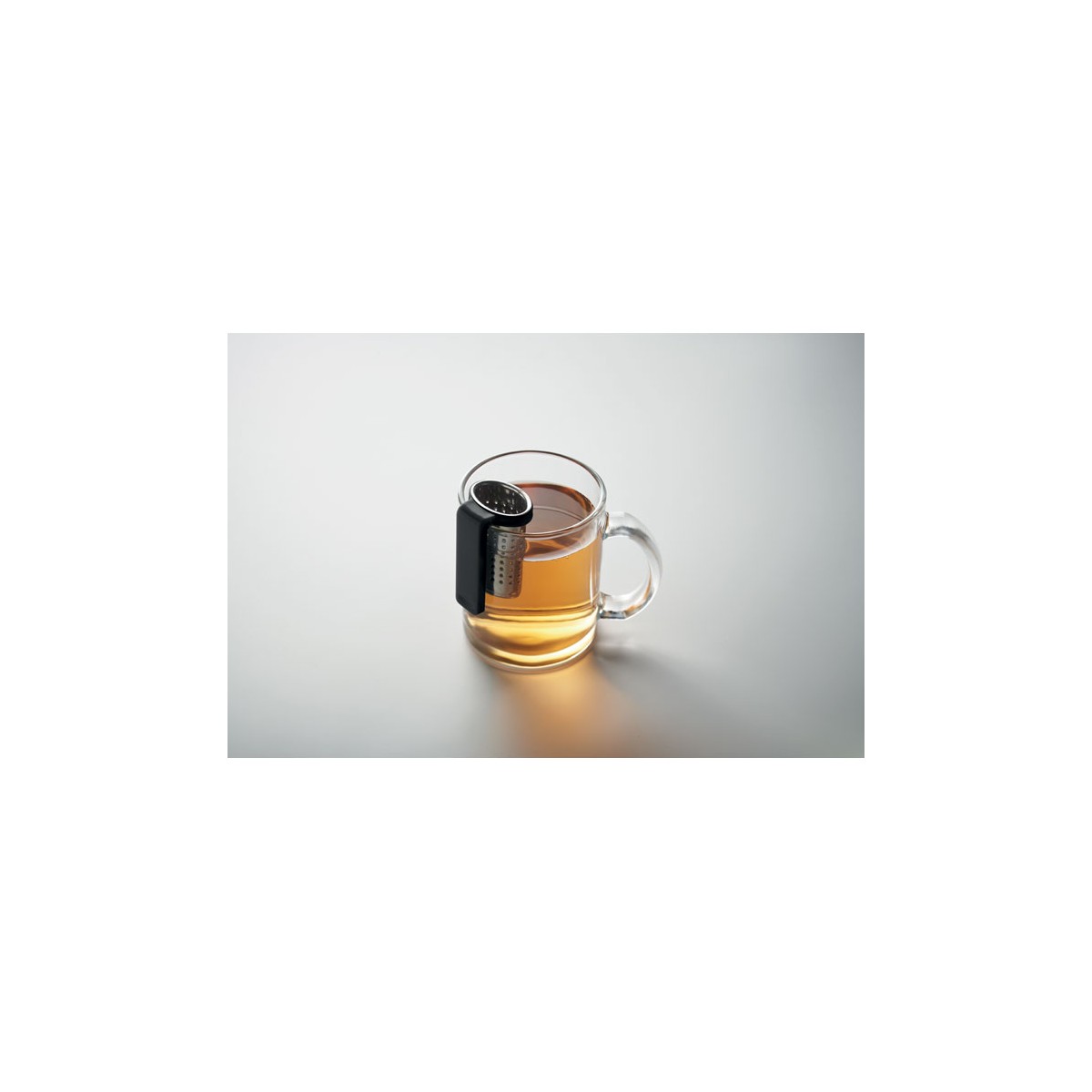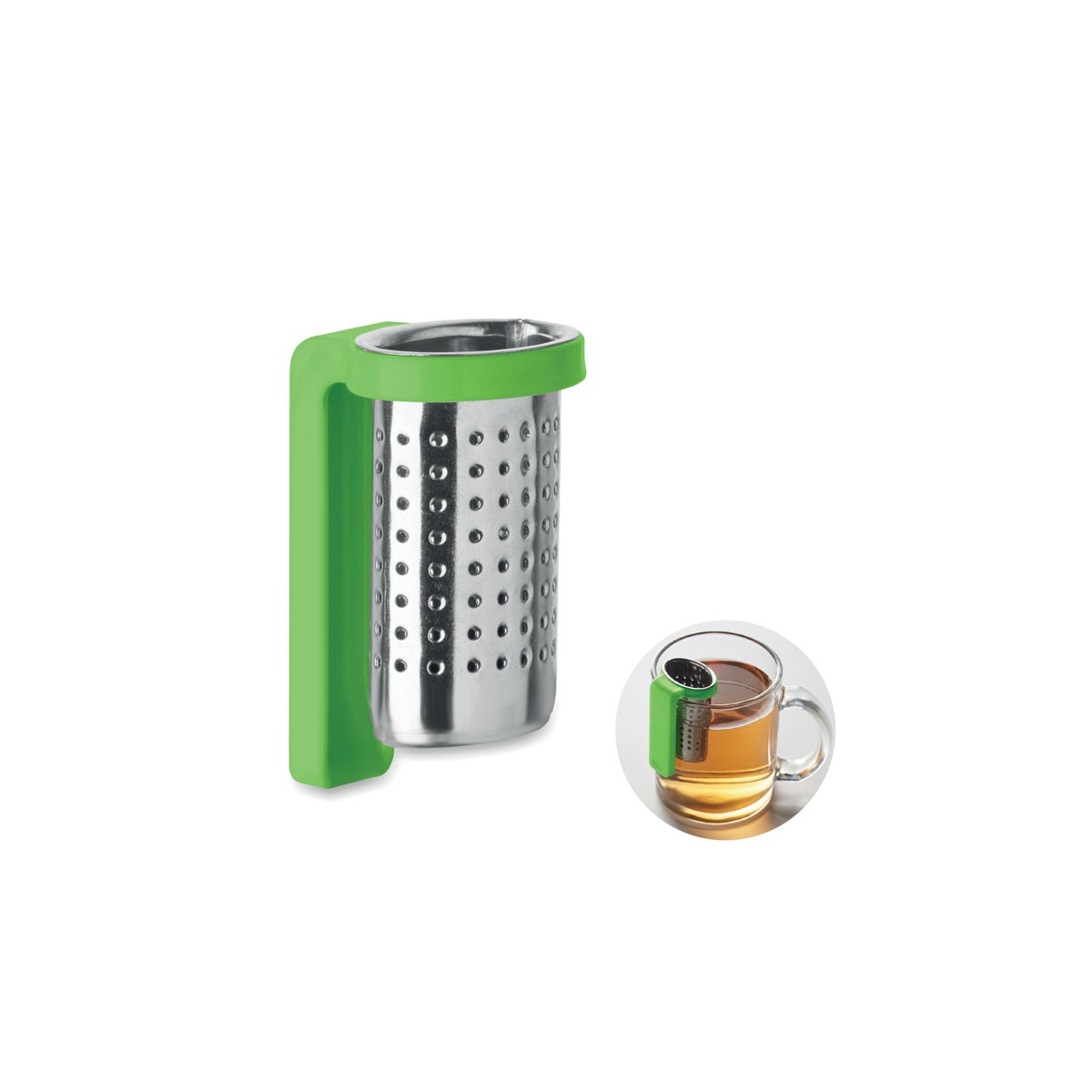 Infusore per tè in foglie in acciaio inox con gancio in PP.