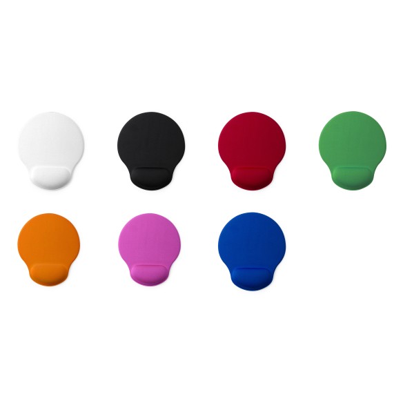 Tappetino mouse in morbido poliestere. Con base in gomma antiscivolo e poggiapolsi imbottito per prevenire stress e dolori articolari.