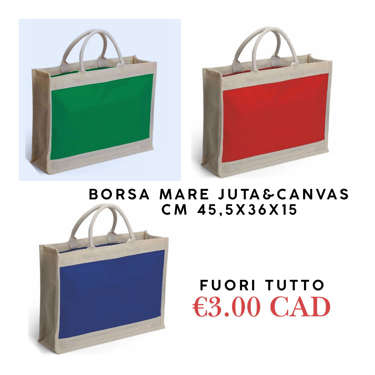 BORSA MARE IN IUTA E CANVAS cm 45,5x36x15